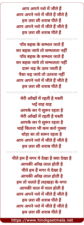 Lyrics of Aap Apne Nashe Me Jeete Hai - आप अपने नशे में जीते हैं