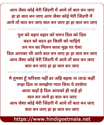 Lyrics of Aap Jaisa Koi Meri Zindagi Me Aaye - आप जैसा कोई मेरी जिंदगी में आये तों बात बन जाए