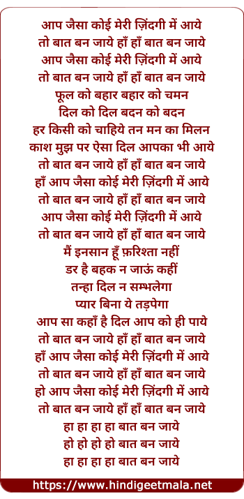 Lyrics of Aap Jaisa Koi Meri Zindagi Me Aaye - आप जैसा कोई मेरी जिंदगी में आए