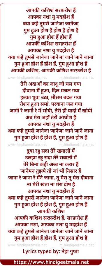 Lyrics of Aapki Kashish Sarfarosh Hain - आपकी कशिश सरफ़रोश हैं