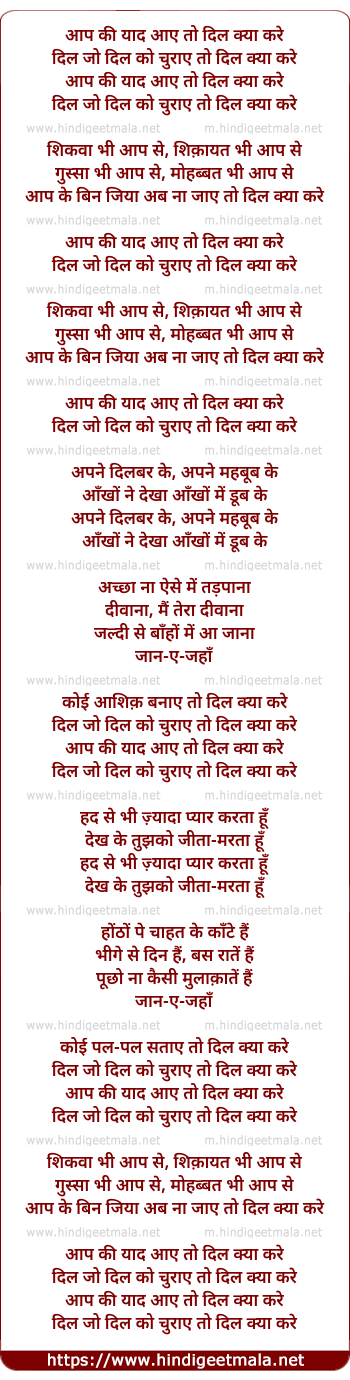 Poetic Translation - Lyrics of Aapki Yaad Aaye To ( Sad)