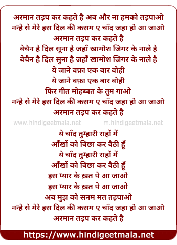 Lyrics of Aarman Tadap Kar Kehte Hai - अरमान तड़प कर कहते है