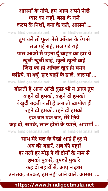 Lyrics of Aasamaan Ke Niche Ham Aaj Apane Pichhe - आसमाँ के नीचे, हम आज अपने पीछे