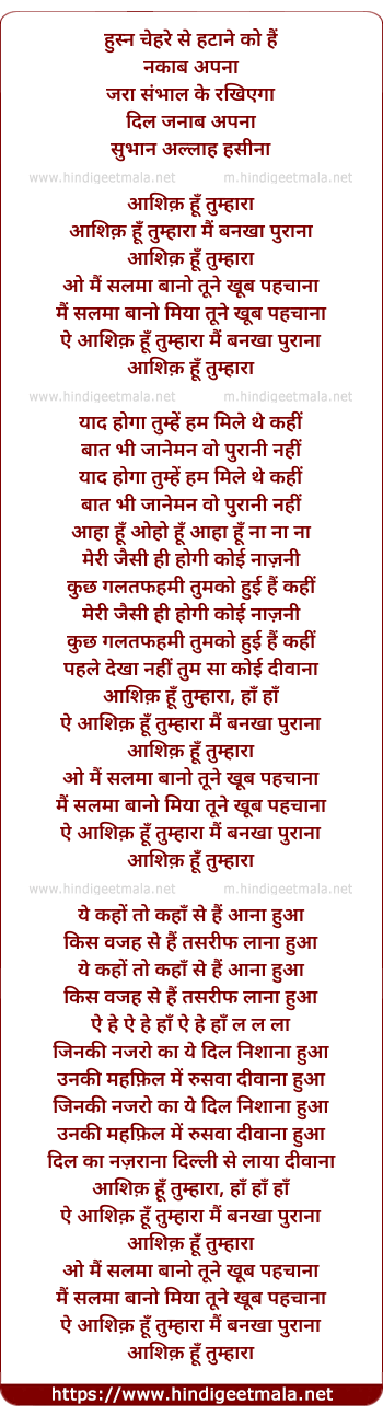 Lyrics of Aashaiq Hun Tumhara - आशिक़ हूँ तुम्हारा
