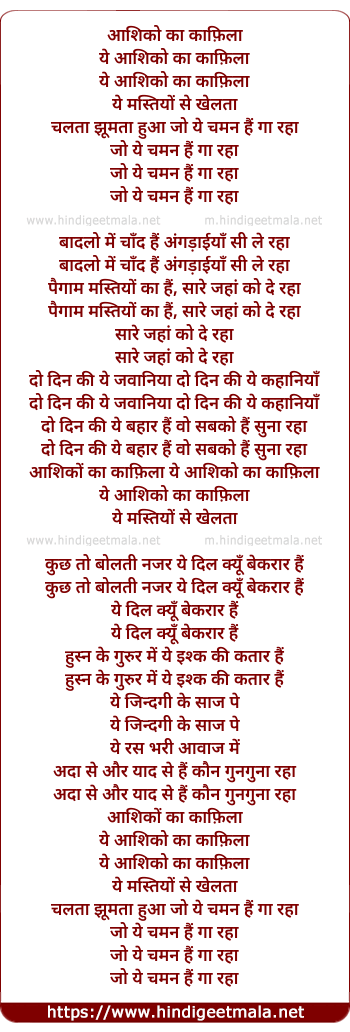 Lyrics of Aashiko Ka Kaafila - आशिको का काफ़िला