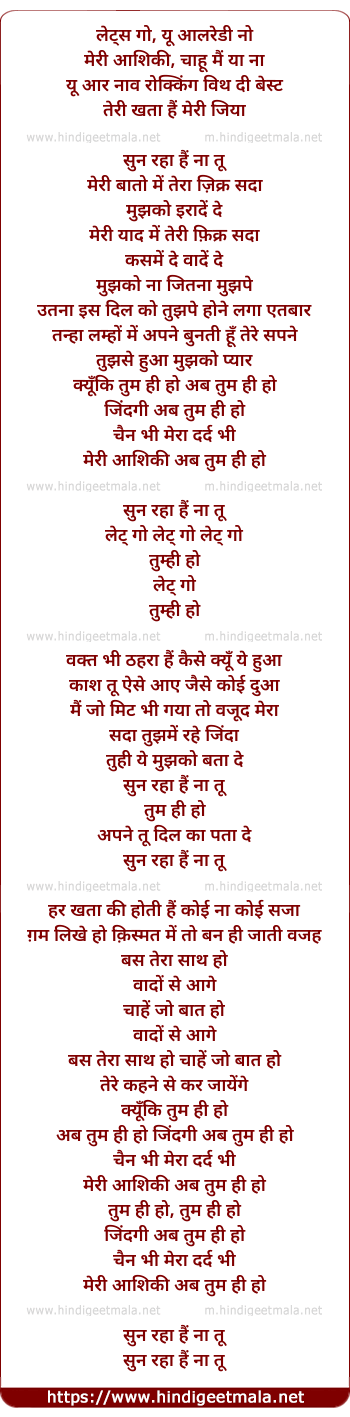 sun raha hai na tu tum hi ho