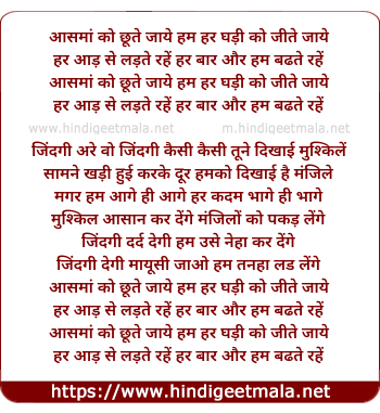 Lyrics of Aasman Ko Chhute Jayey Ham - आसमां को छूते जाये हम हर घड़ी को जीते जाये