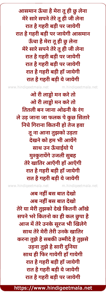 Lyrics of Aasman Oonchaa Hai Mera - आसमान ऊँचा है मेरा