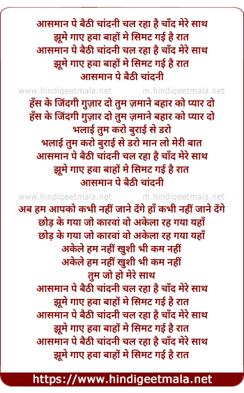 Lyrics of Aasman Pe Baithi Chandni - आसमान पे बैठी चांदनी