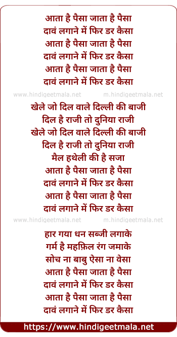 Lyrics of Aata Hai Paisa Jata Hai Paisa - आता है पैसा जाता है पैसा