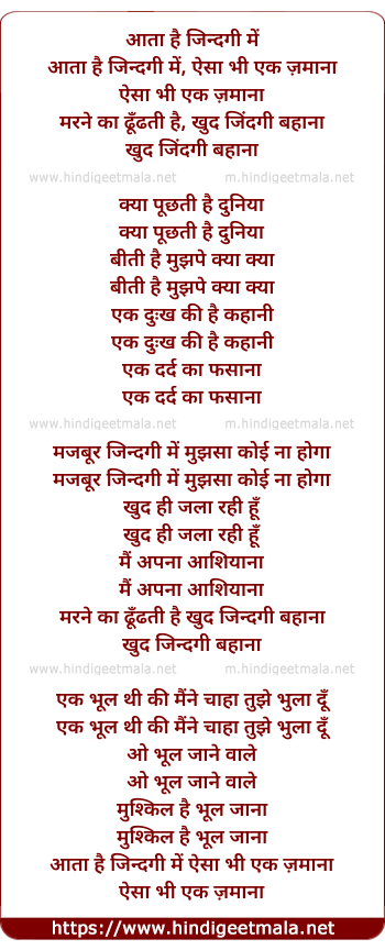 Lyrics of Aata Hai Zindagi - आता है जिन्दगी में