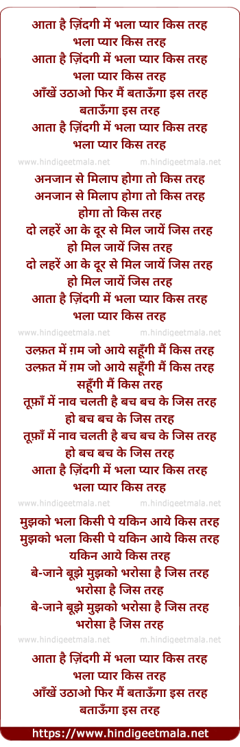 Lyrics of Aataa Hai Zindagi Men Bhalaa Pyaar Kis Tarah - आता है ज़िंदगी में भला प्यार किस तरह