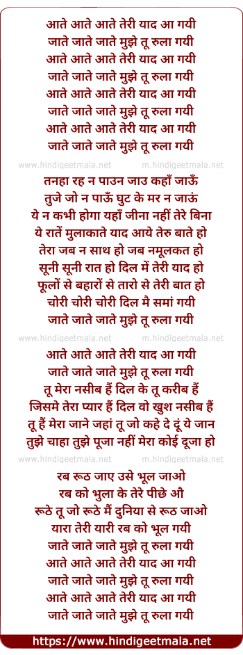 Lyrics of Aate Aate Teri Yaad Aa Gayi (2) - आते आते आते तेरी याद आ गयी