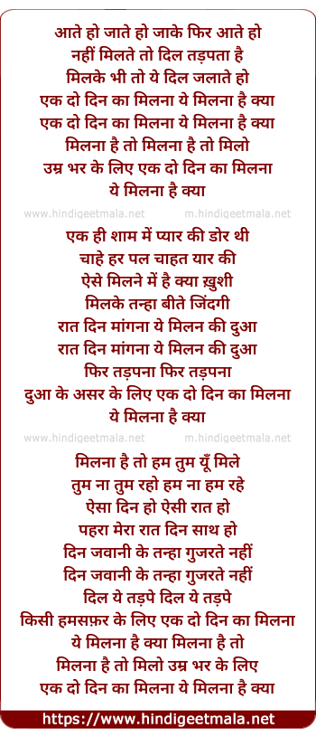 Lyrics of Aate Ho Jaate Ho - आते हो जाते हो
