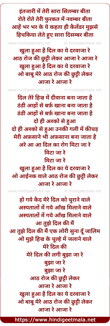 Lyrics of Aath Roz Ki Chhutti Lekar Aa - इंतजारी में तेरी सारा सितम्बर बीता