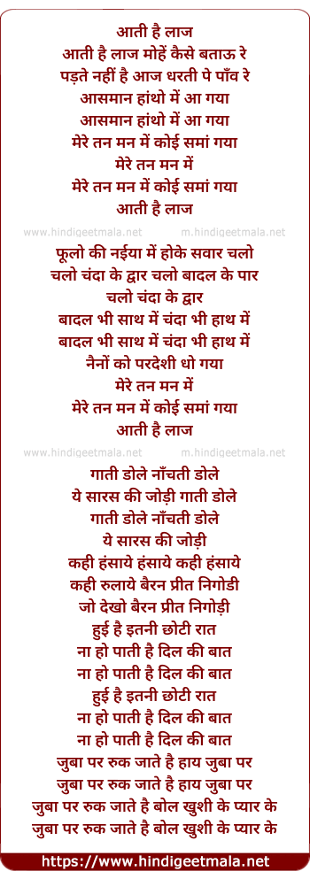 Lyrics of Aati Hai Laaj Mohe Kaise Bataau - आती है लाज मोहे कैसे बताऊ