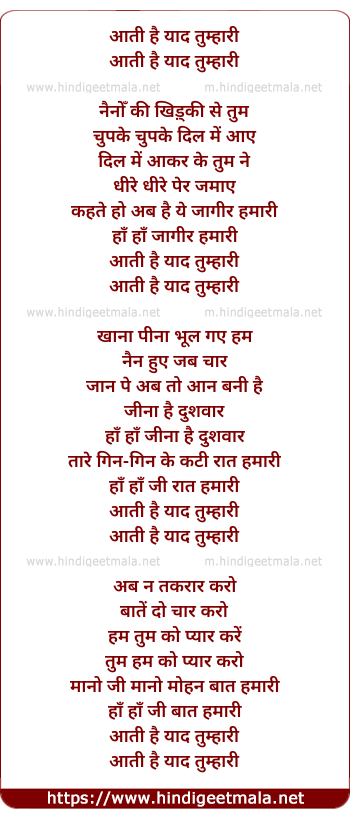 Lyrics of Aati Hai Yaad Tumhari - आती है याद तुम्हारी