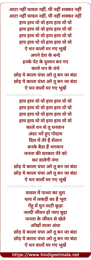 Lyrics of Aatta Nahi Chawal Nahi - आटा नहीं चावल नहीं, घी नहीं शक्कर नहीं
