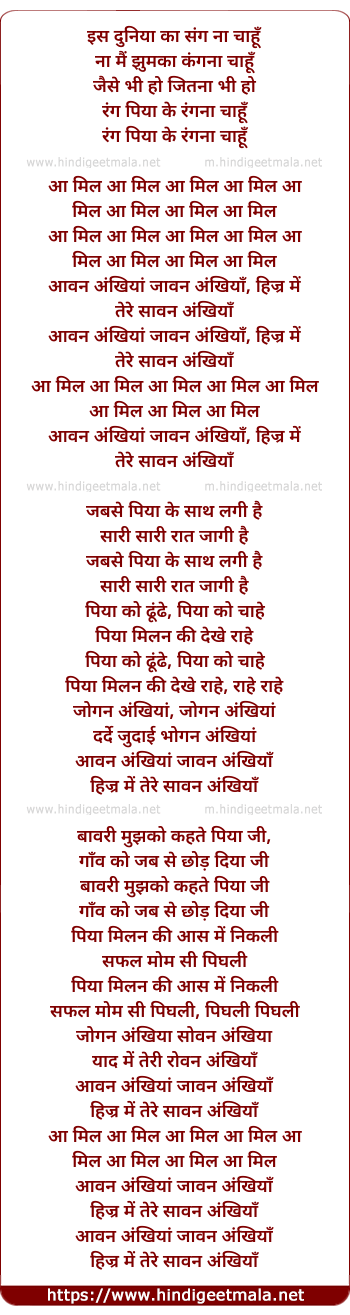 Lyrics of Aawan Ankhiyan Jaawan Aankhiyaan - आवन अंखियां जावन अंखियाँ