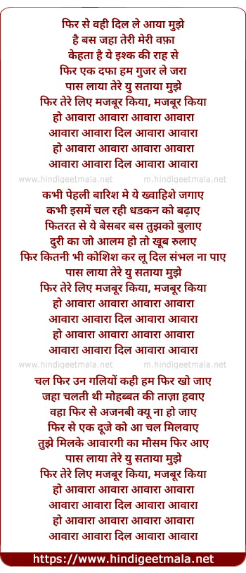 Poetic Translation - Lyrics of Aawaraa - आवारा