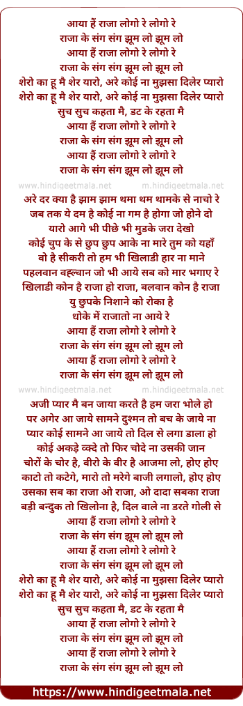 Lyrics of Aaya Hai Raja Logo Re Logo - आया हैं राजा लोगो रे लोगो रे