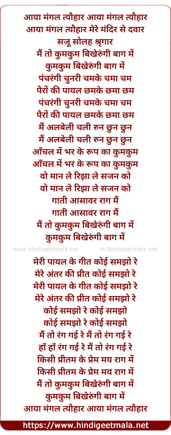 Lyrics of Aaya Mangal Ka Tyohar - आया मंगल त्यौहार आया मंगल त्यौहार