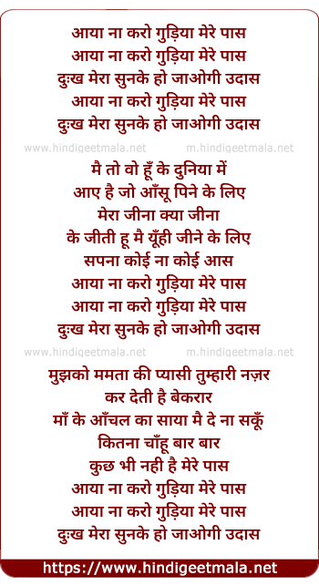 Lyrics of Aaya Na Karo Gudiya Mere Paas - आया ना करो गुड़िया मेरे पास