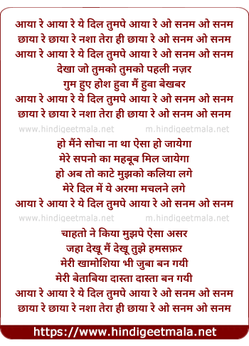 Lyrics of Aaya Re Aaya Re Ye Dil Tumpe Aaya - आया रे आया रे ये दिल तुमपे आया