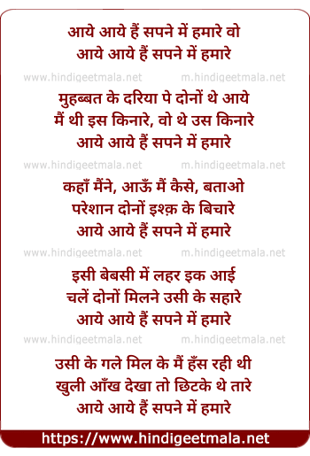 Lyrics of Aaye Aaye Hain Sapne Me Hamare Woh - आये आये हैं सपने में हमारे वो