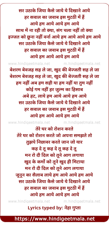 Lyrics of Aaye Ham Aaye - आये हम आये