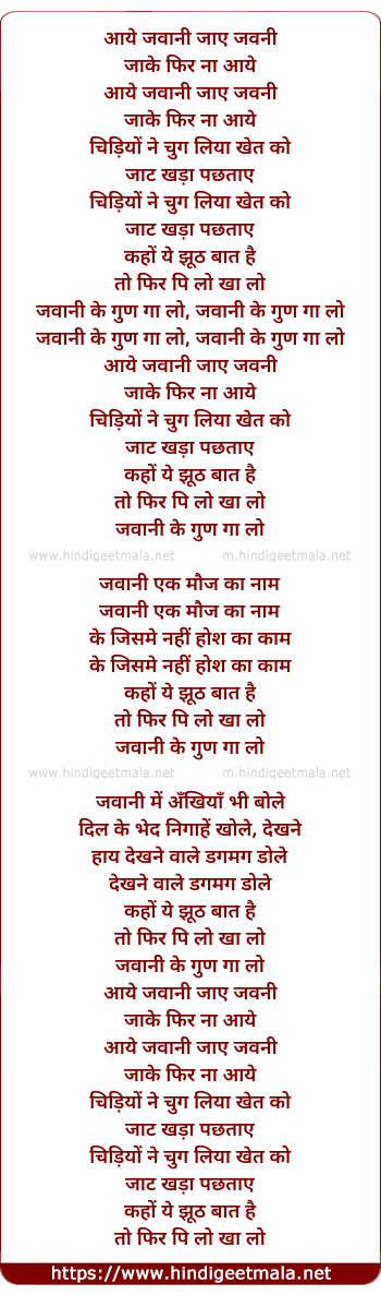 Lyrics of Aaye Jawani Jaaye Jawani - आये जवानी जाए जवनी