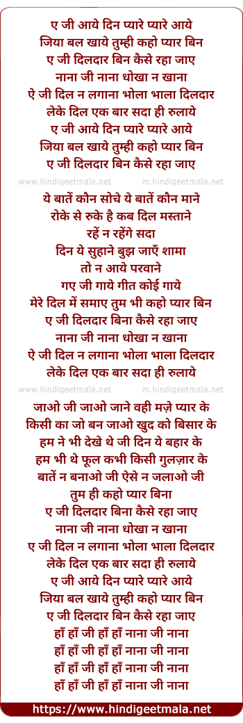 aye ji dildar bina kaise raha jaaye
