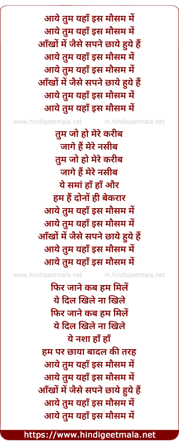 Lyrics of Aaye Tum Yaha - आये तुम यहाँ इस मौसम में
