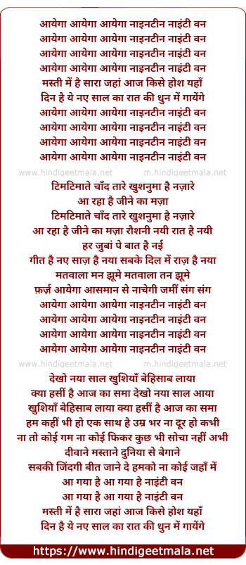 Lyrics of Aayega Aayega Nineteen Ninty One - आयेगा आयेगा नाइनटीन नाइंटी वन