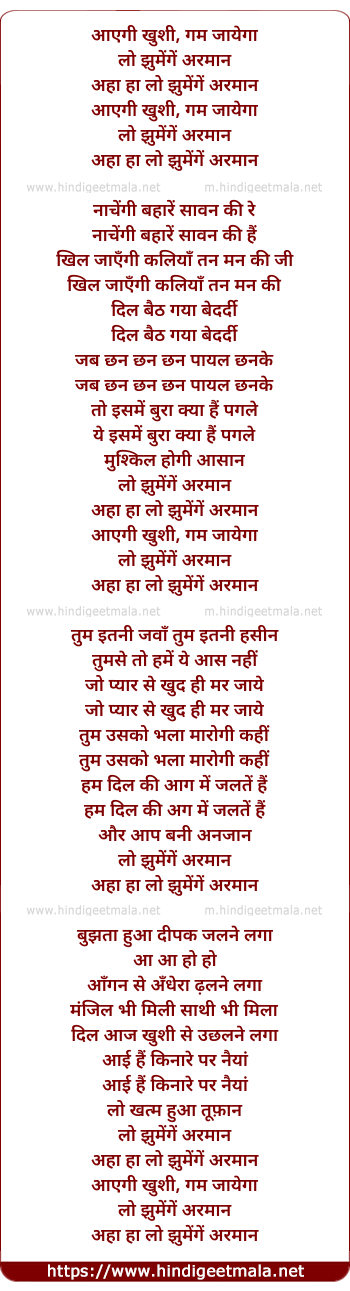 Lyrics of Aayegi Khushi - आएगी खुशी