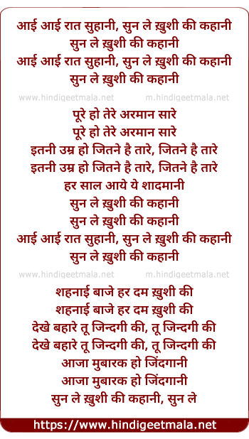 aayi aayi raat suhaani, sun le kushi ki kahaani