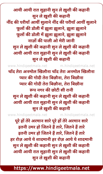 Lyrics of Aayi Aayi Raat Suhani - I - आयी आयी रात सुहानी