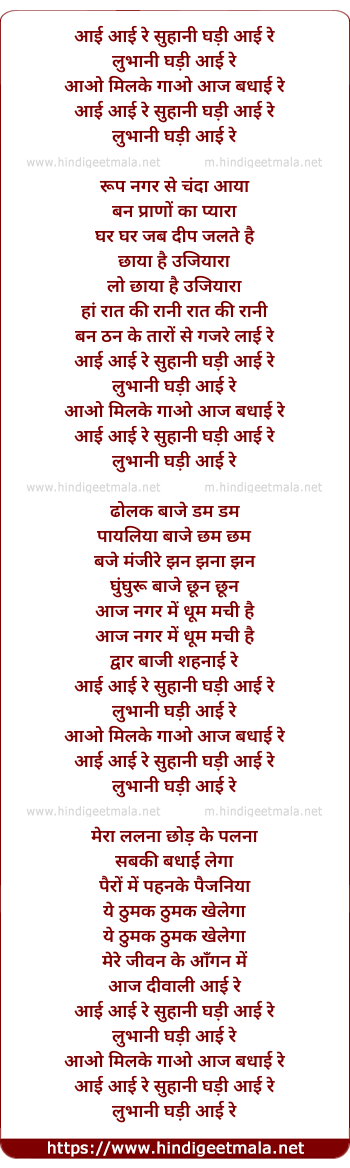 Lyrics of Aayi Aayi Re Suhani Ghadi Aayi Re - आई आई रे सुहानी घड़ी आई रे