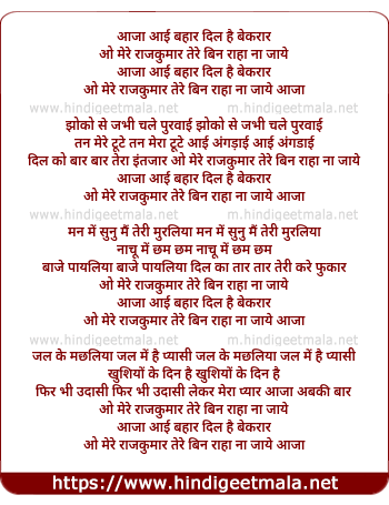 Lyrics of Aayi Bahar Aayi Aayi Bahar - आई बहार आई आई बहार