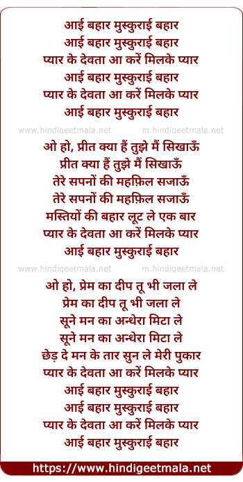 Lyrics of Aayi Bahar Muskurayi Bahar - आई बहार मुस्कुराई बहार
