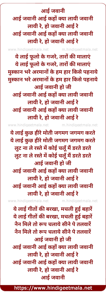 Lyrics of Aayi Jawani Aayi Kaho Kya Layi - आई जवानी