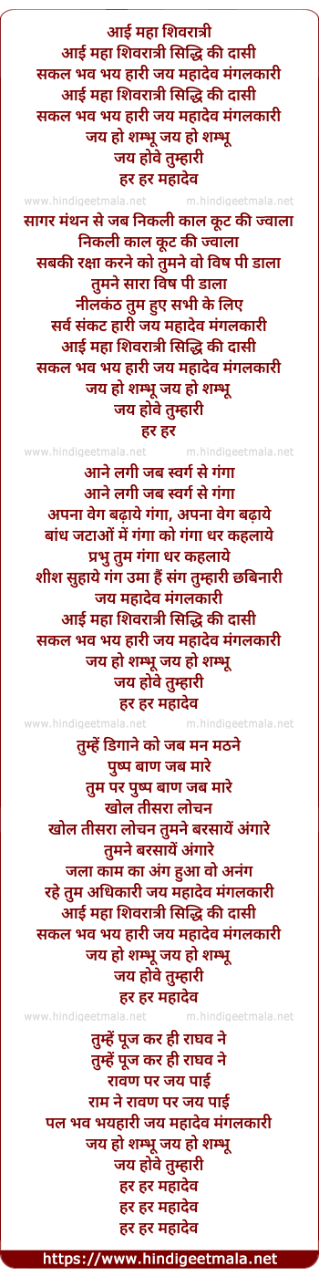 Lyrics of Aayi Maha Shivratri - आई महा शिवरात्री