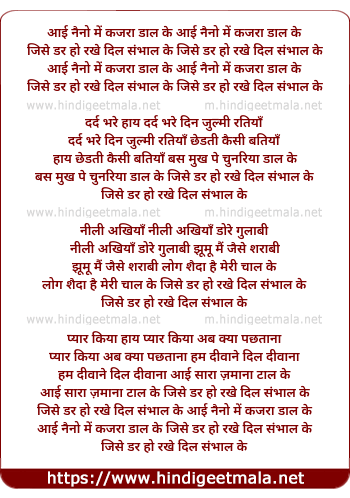 Lyrics of Aayi Naino Me Kajra Daal Ke - आई नैनो में कजरा डाल के