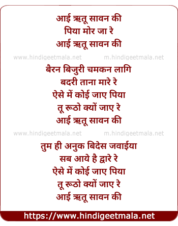 Lyrics of Aayi Ritu Saawan Ki (2) - आई ऋतू सावन की