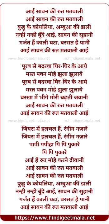 Lyrics of Aayi Sawan Ki Rut Matwali - आई सावन की रुत मतवाली