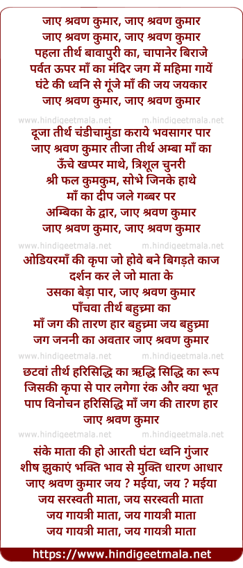 Lyrics of Jaye Shravan Kumar - जाए श्रवण कुमार