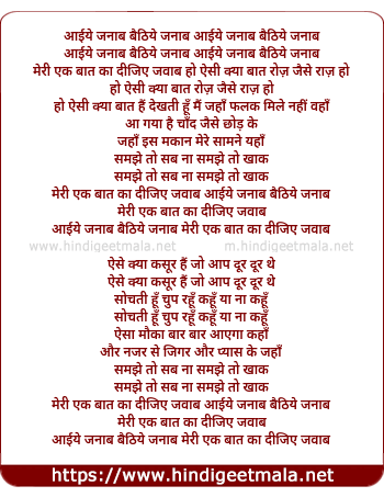 Lyrics of Aayiye Janab Baithiye Janab Meri Ek Bat Ka Dijiye Jawab - आईये जनाब बैठिये जनाब मेरी एक बात का दीजिये जवाब