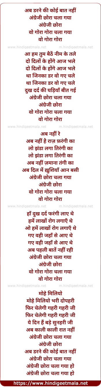 Lyrics of Ab Darne Ki Koi Baat Nahi - अब डरने की कोई बात नहीं