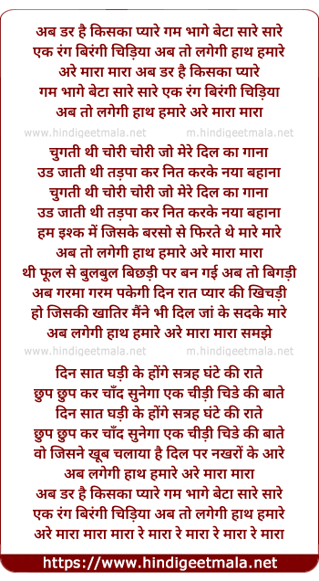 Lyrics of Ab Darr Hai Kiska Pyare - अब डर है किसका प्यारे