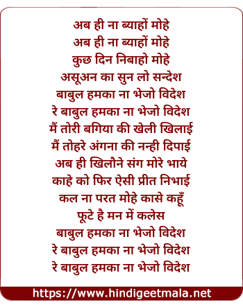 Lyrics of Ab Hi Na Byaho Mohe - अब ही ना ब्याहों मोहे